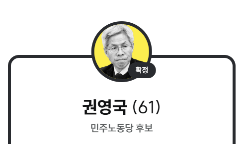 | 5 | 권영국 | 민주노동당 | 노동 변호사, 복지국가 주장 |