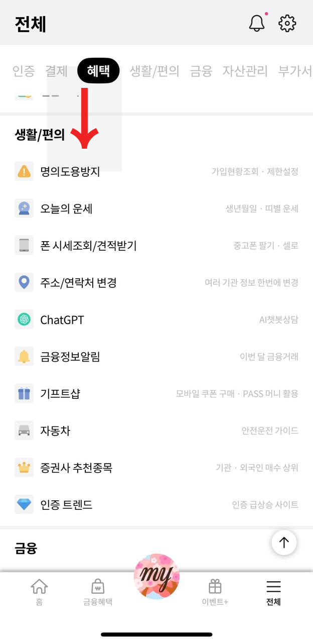 3. PASS 앱 명의도용방지 서비스 확인 방법